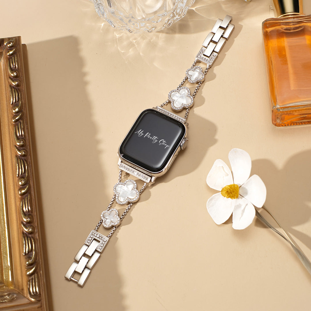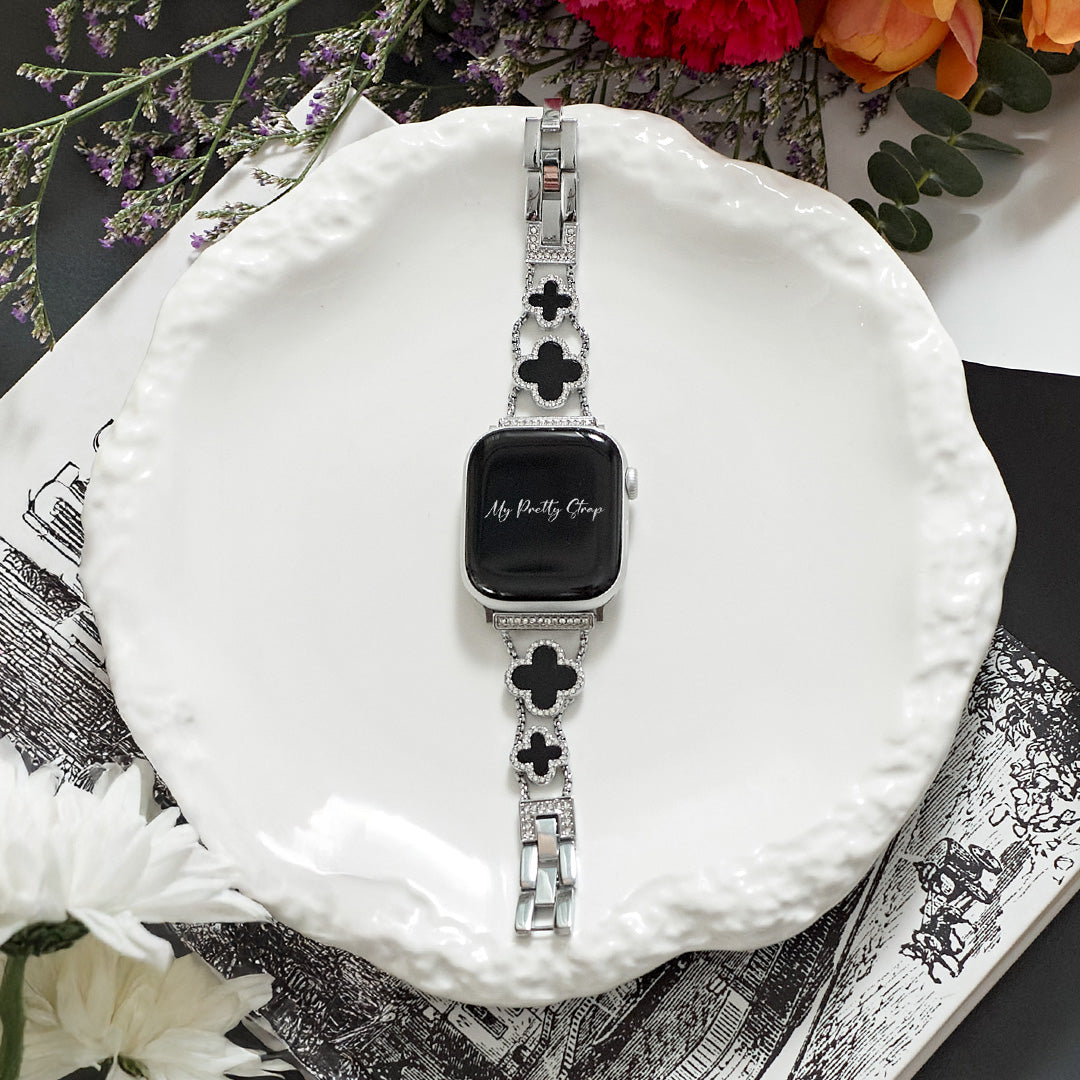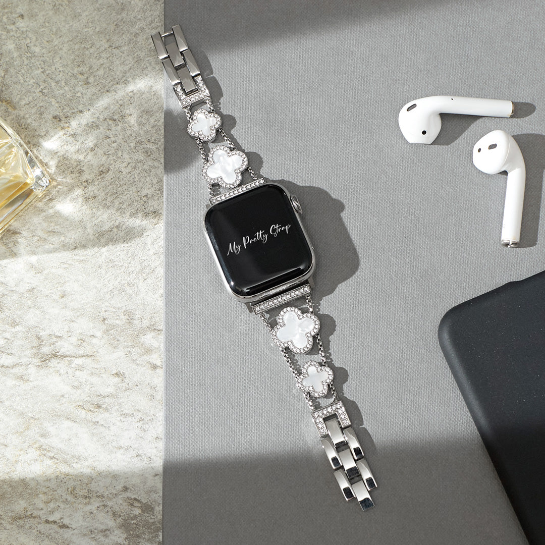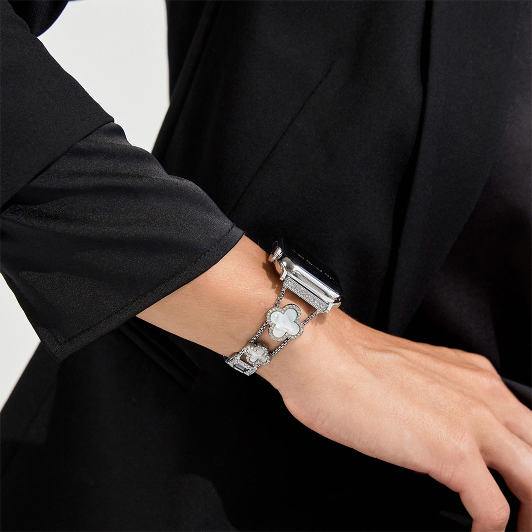 Crafted from premium stainless steel and with four clovers for the best luck, this watch strap elevates your Apple Watch with its luxurious look & feel. Each watch band was designed to fit your Apple Watch seamlessly straight from the box.