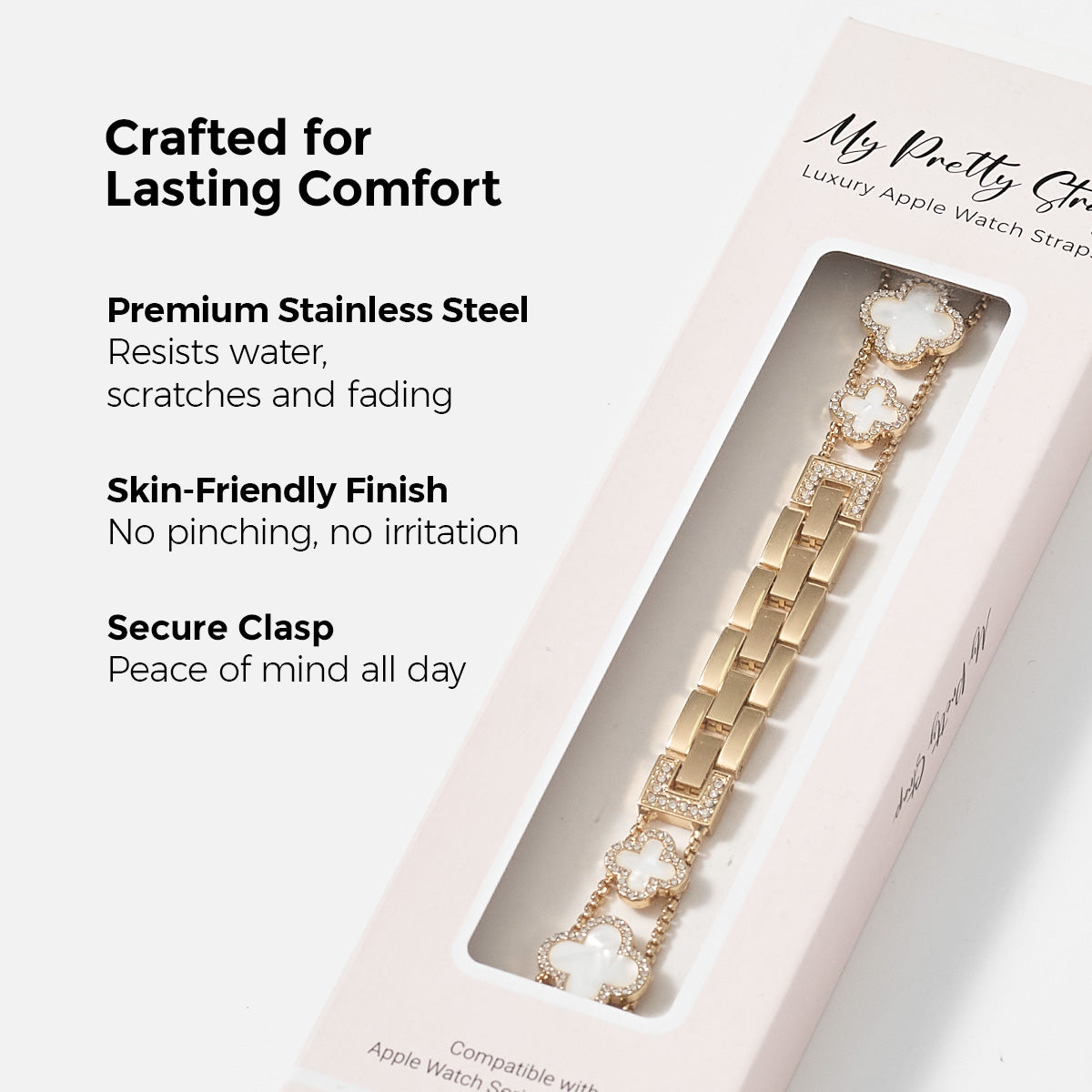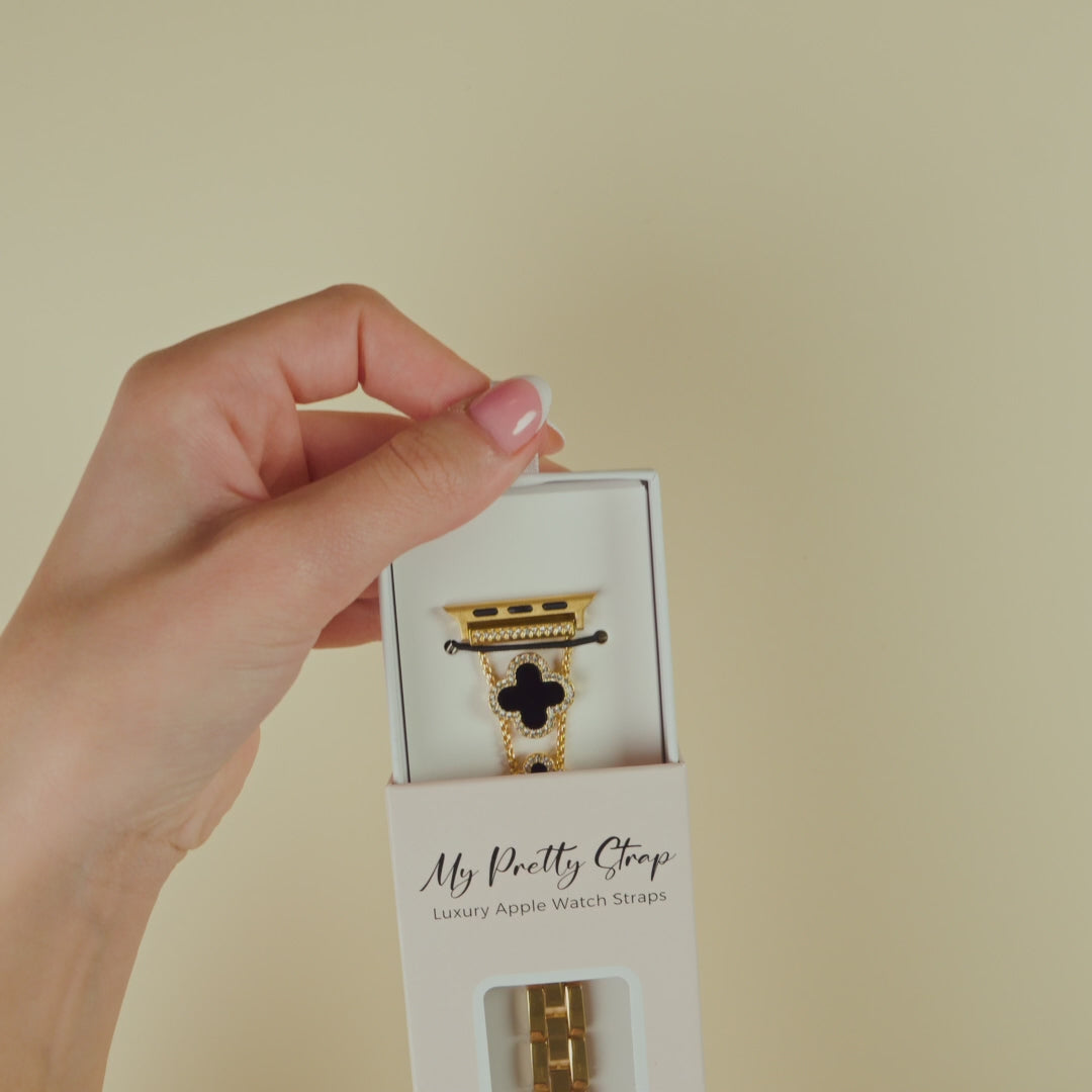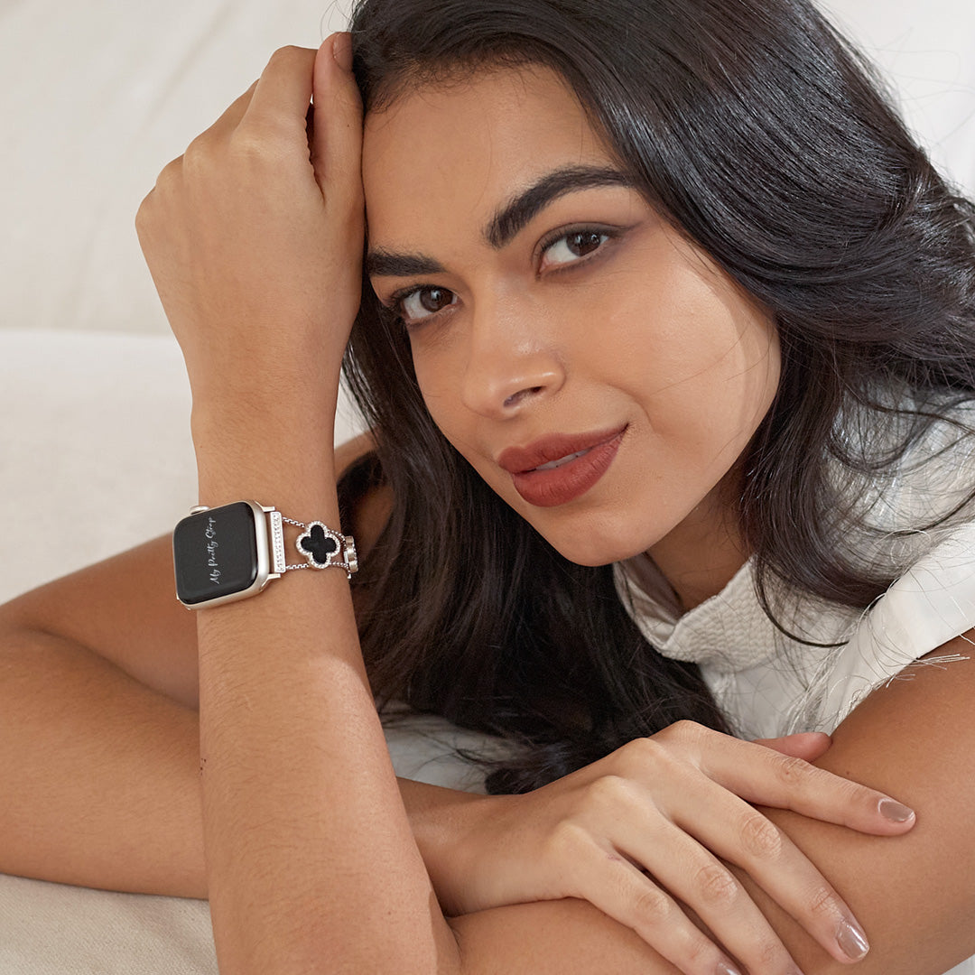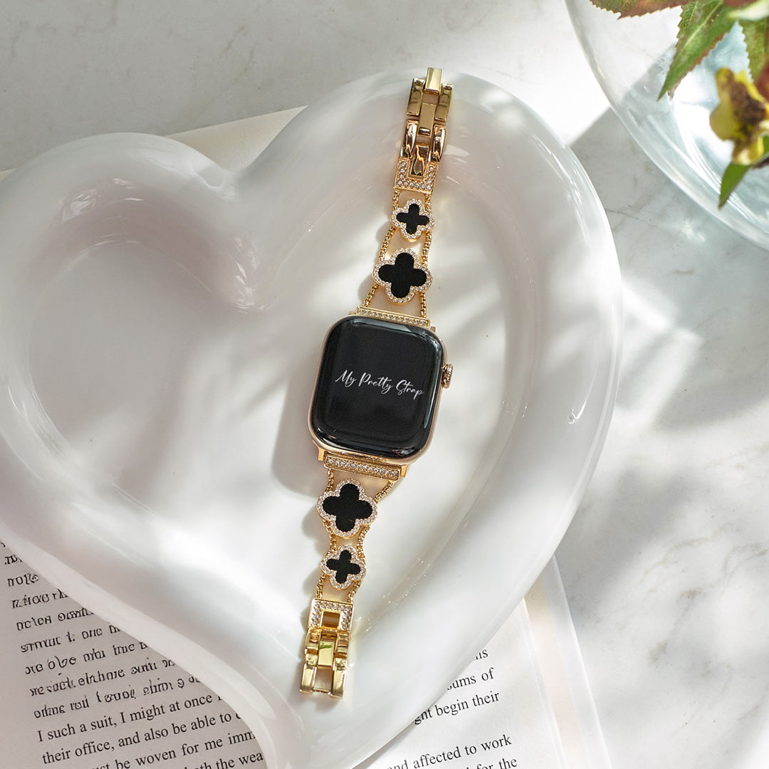 Crafted from premium stainless steel and with four clovers for the best luck, this watch strap elevates your Apple Watch with its luxurious look & feel. Each watch band was designed to fit your Apple Watch seamlessly straight from the box.
