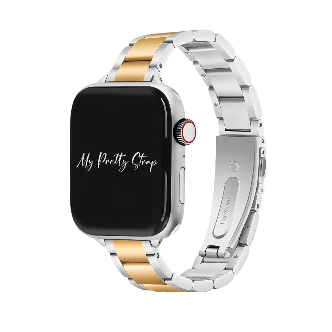 Crafted from premium stainless steel and twisted into elegant woven link chains, this watch band elevates your Apple Watch with its luxurious look & feel. Each watch band comes with its own metal adapter, designed to fit your Apple Watch seamlessly straight from the box.