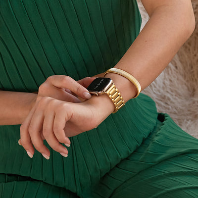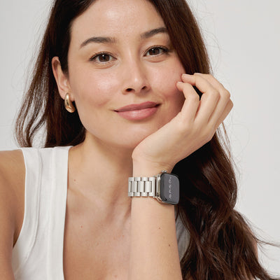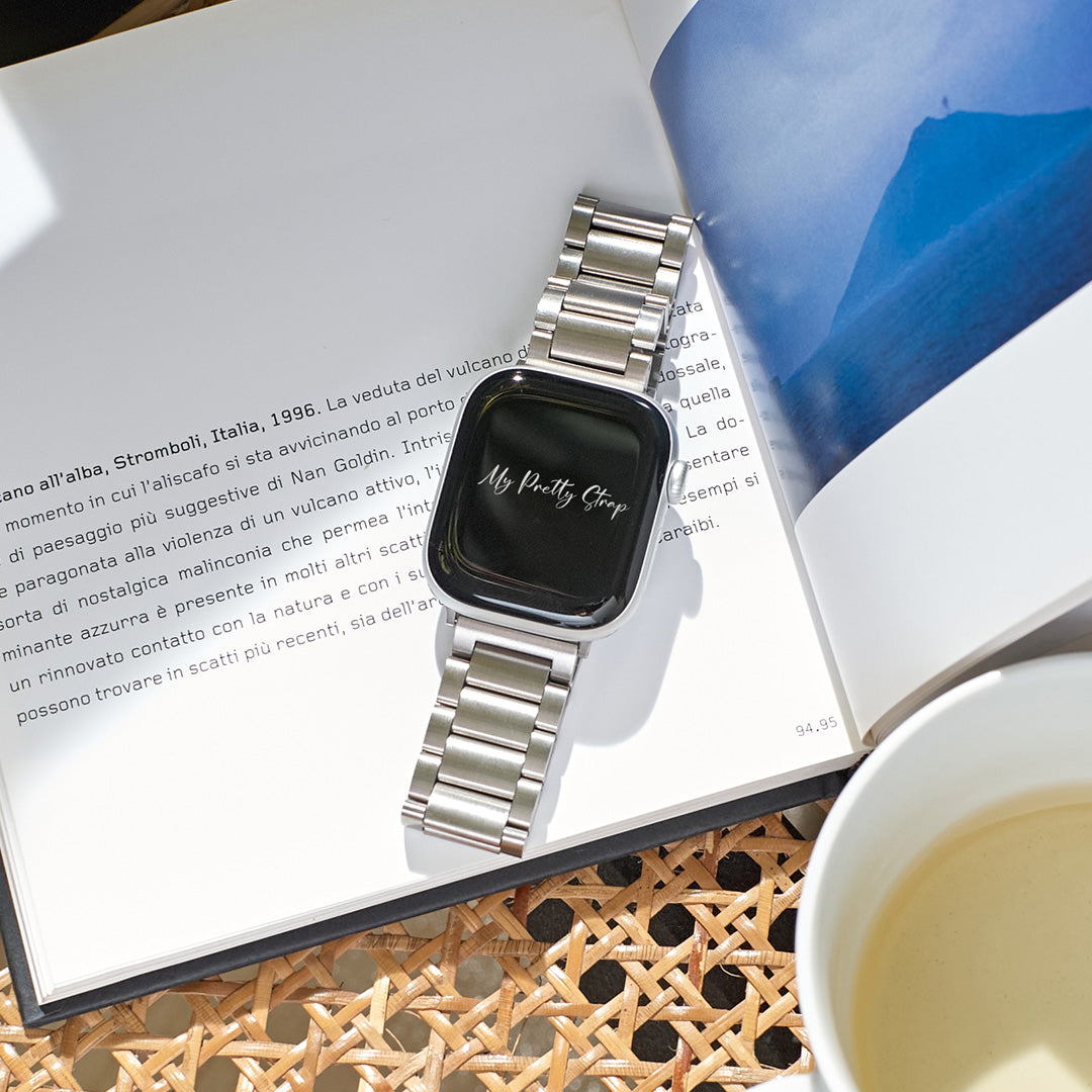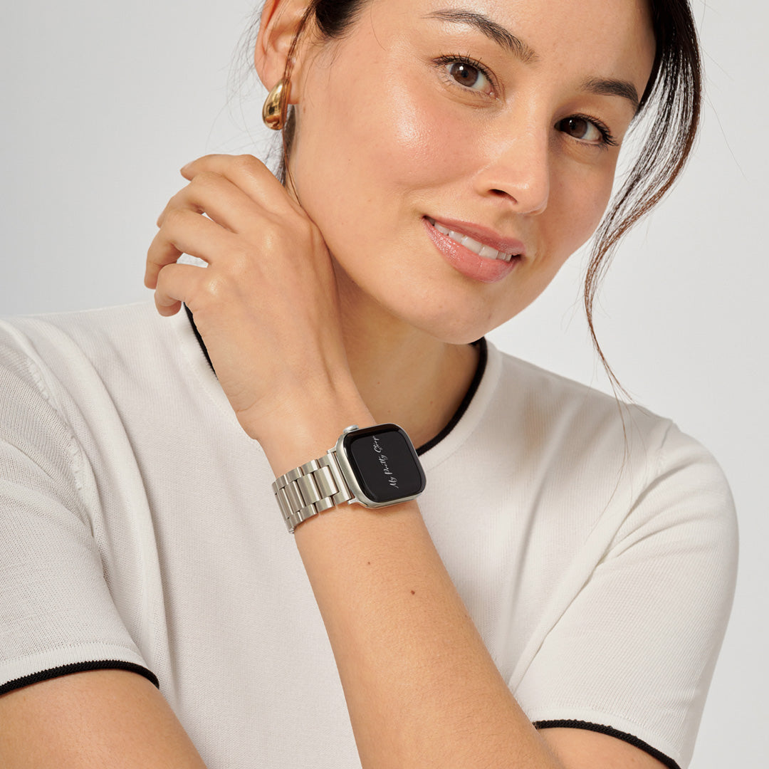 Crafted from premium stainless steel and twisted into elegant woven link chains, this watch band elevates your Apple Watch with its luxurious look & feel. Each watch band comes with its own metal adapter, designed to fit your Apple Watch seamlessly straight from the box.