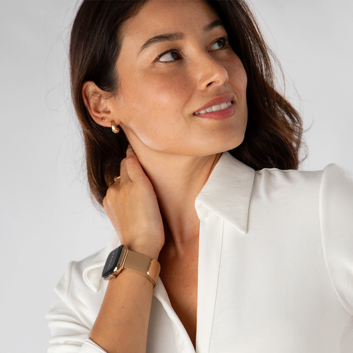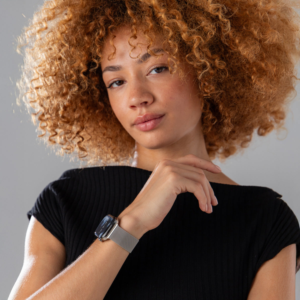 Crafted from premium stainless steel and twisted into elegant woven link chains, this watch band elevates your Apple Watch with its luxurious look & feel. Each watch band comes with its own metal adapter, designed to fit your Apple Watch seamlessly straight from the box.