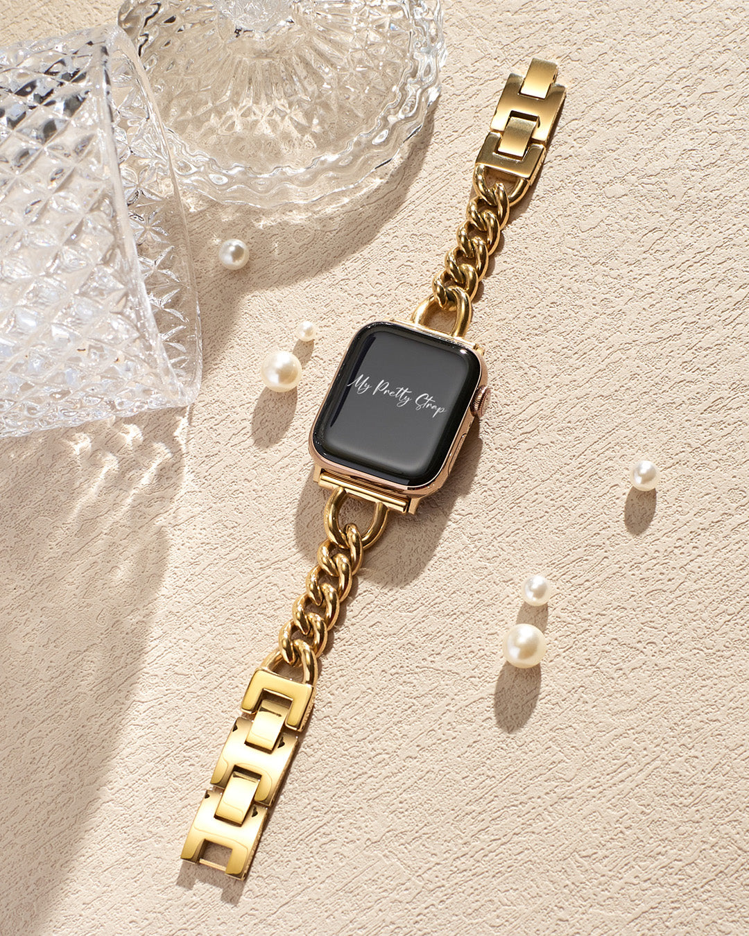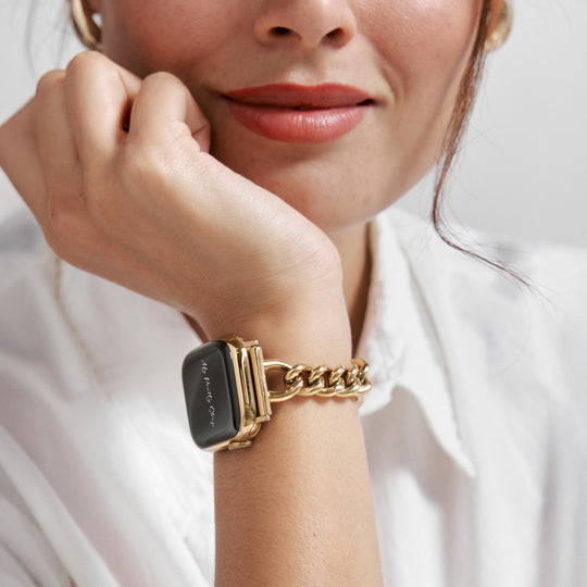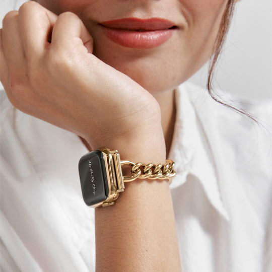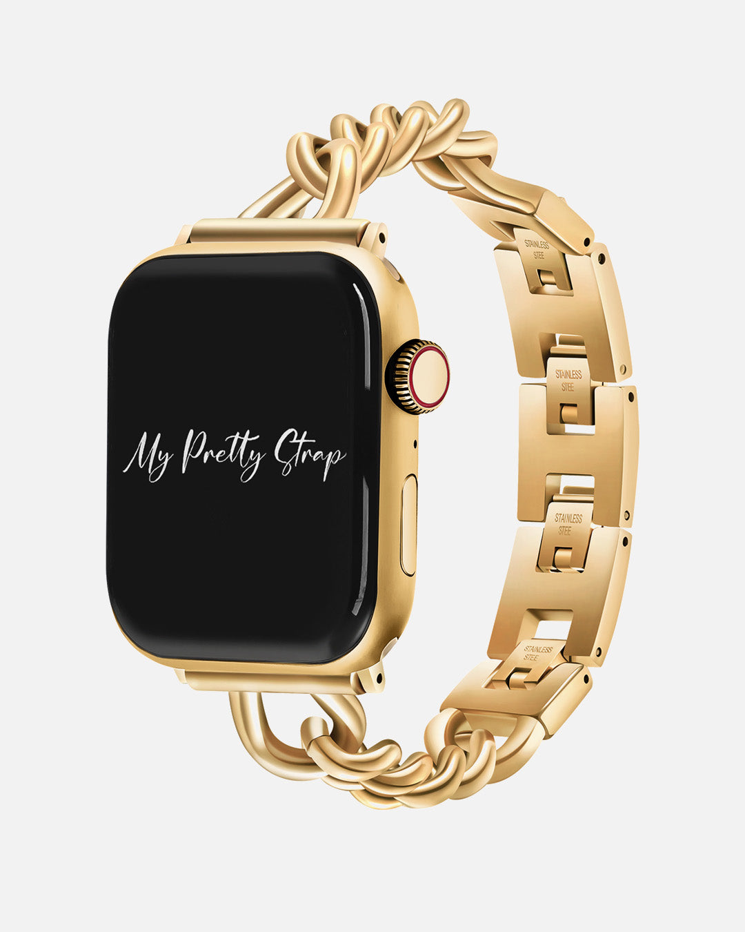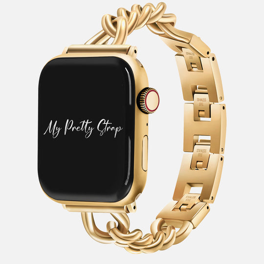 Crafted from premium stainless steel and twisted into elegant woven link chains, this watch band elevates your Apple Watch with its luxurious look & feel. Each watch band comes with its own metal adapter, designed to fit your Apple Watch seamlessly straight from the box.