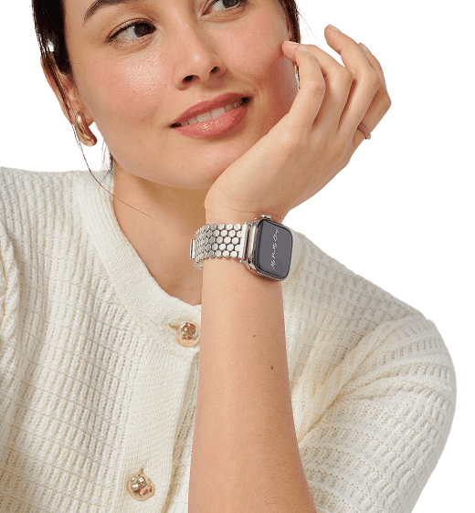 Crafted from premium stainless steel and twisted into elegant woven link chains, this watch band elevates your Apple Watch with its luxurious look & feel. Each watch band comes with its own metal adapter, designed to fit your Apple Watch seamlessly straight from the box.